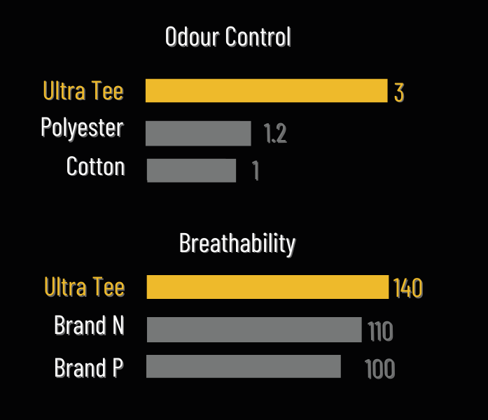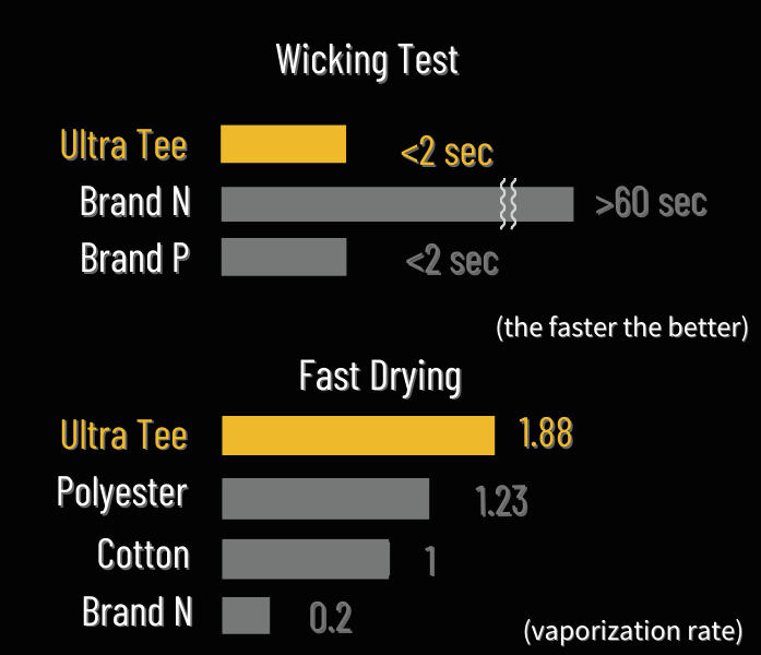 Made with N46 elastic yarn, Ultra Tee expands your comfort zone for better daily performance.