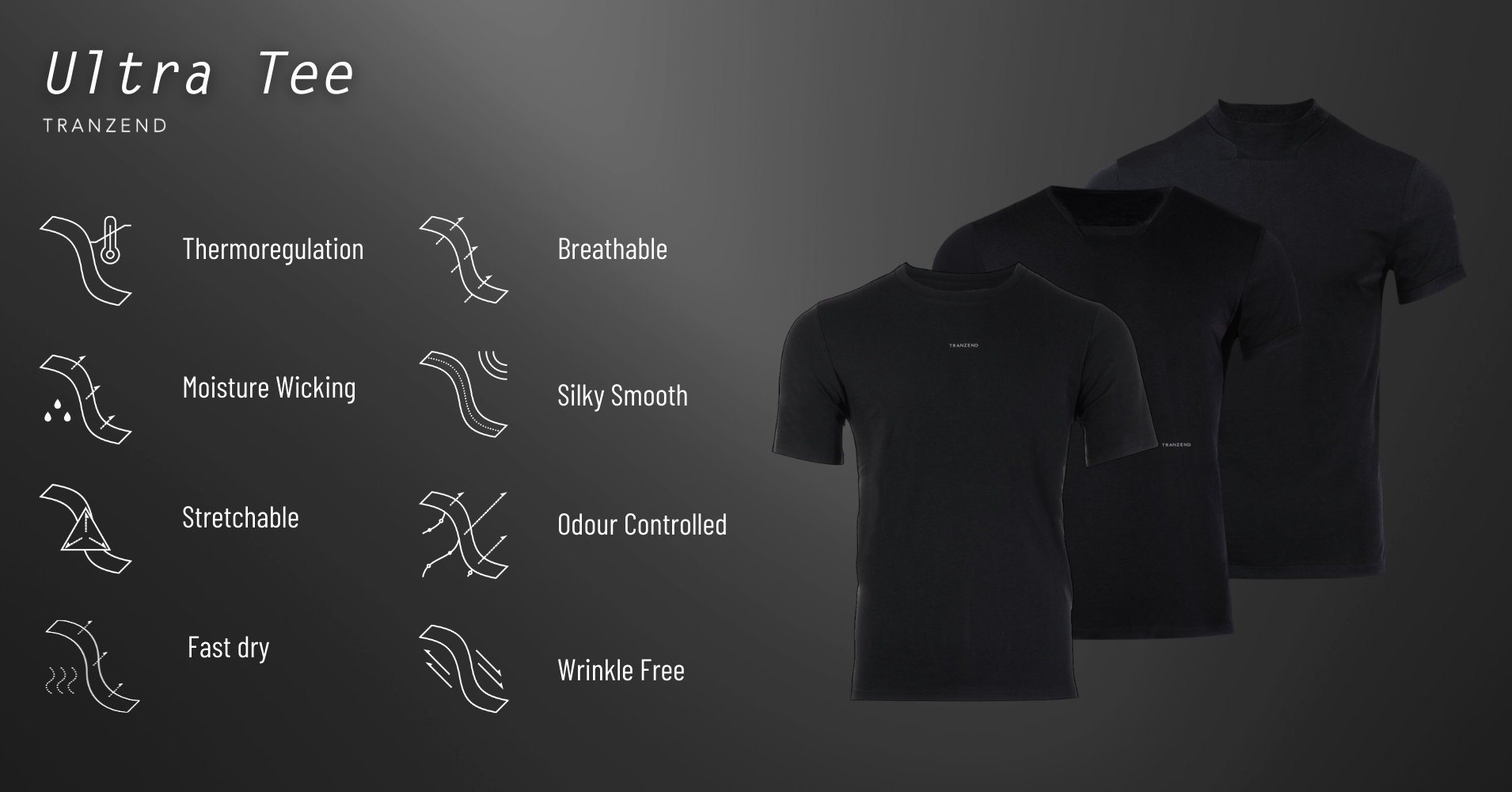 Made from our newly developed Hybrid technology fabric | S.Café® x Tencel™️. Ultra Tee is brought to you believing it will contribute to your daily performance with a new level of comfort. Ultra Tee has three times more breathability than average T-shirts. It's stretchable, soft to the skin, moisture-wicking and odour controlled. Whether you’re working out, day travels, or at work, Ultra Tee got you covered.