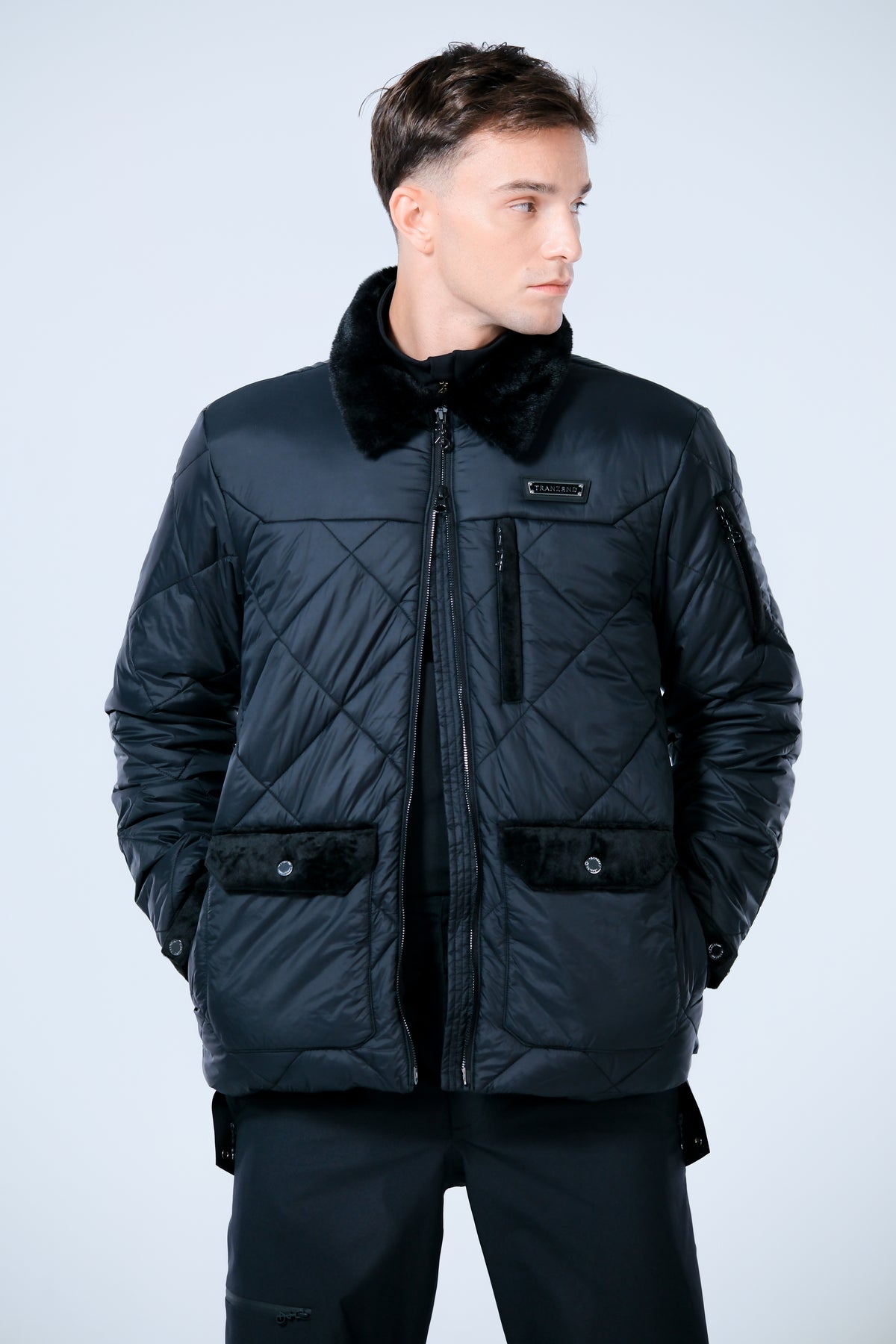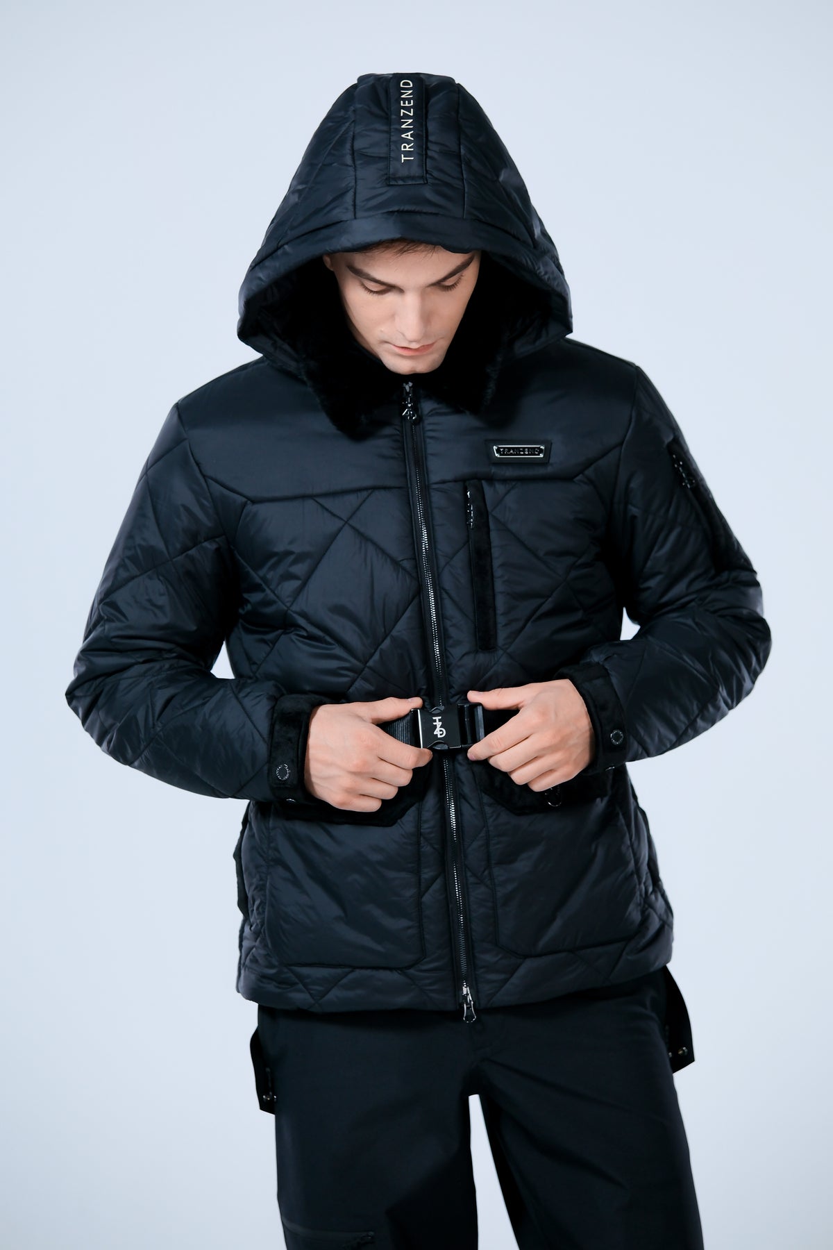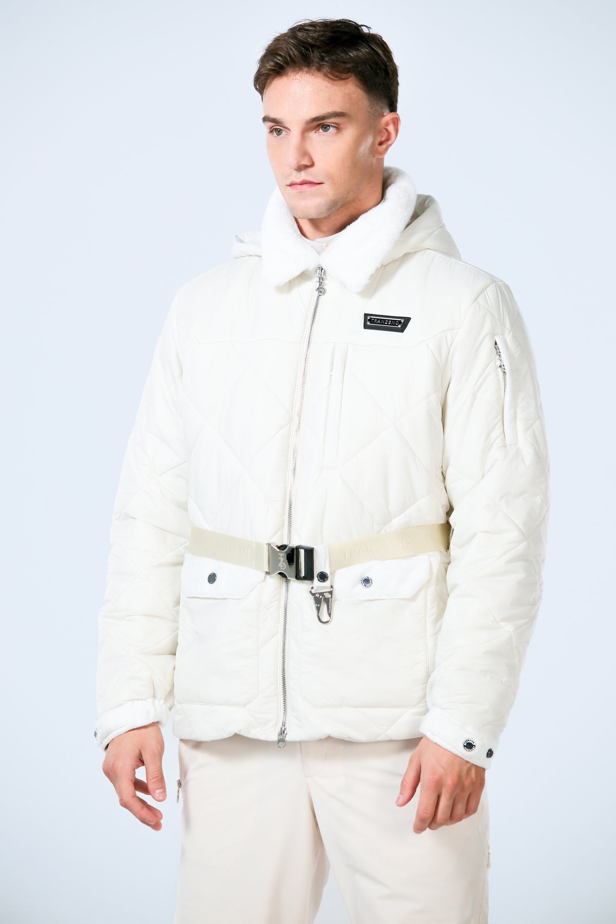 Belted puffer jacket with understated diamond quilting and a plush faux fur collar, cut to sculpt a refined chalet chic silhouette. Finished with a water-resistant shell, two-way zip, and technical down insultation, it delivers warmth, weightless comfort from first chair to fireside.